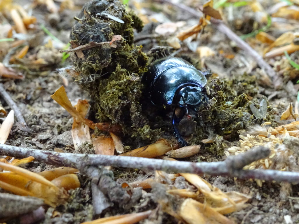 En nog zo’n interessant beestje is de mestkever. Ik kwam hem tegen op een wandeling door het bos en heb een tijdje gefascineerd gekeken naar hoe hij een schapenkeutel aan het ontleden was en heb dat proberen vast te leggen. Zonder fototoestel was ik waarschijnlijk doorgelopen. Je gaat toch anders om je heen kijken met een fototoestel in je hand.